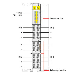 4-Kanal-Digitaleingang; DC 24 V; 0,2 ms; 3-Leiter-Anschluss
