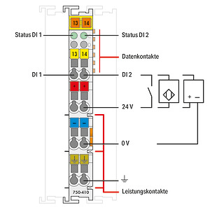2-Kanal-Digitaleingang; DC 24 V; 3 ms; Nährungsinitiator