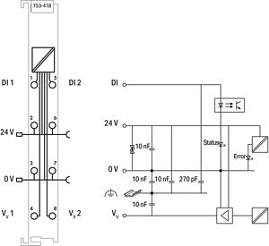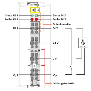 Eingangsklemme DC24V St.753 D./Q. 2-Kanal digital 3ms pos. schaltend