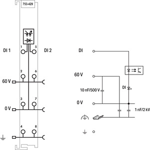 Eingangsklemme DC60V ST753 DI2 2/4-L. 3,0ms L-kontakte p-sch.