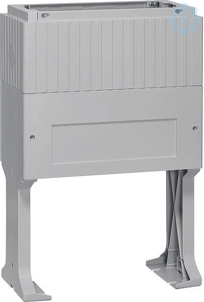 Eingrabsockel, KVS, Bausatz, Größe 0, Höhe: 900 mm. Profilierter Eingrabsockel im Rippendesign, mit Befestigungsschiene aus Winkelstahl 40 x 40 x 3 mm für Bügelschellen als Zugentlastung für Kabel. Seitlich vorgestanzte Öffnung von innen verschließbare, bei Öffnung ist eine Abdeckung d = 55 mm (Zubehör) einzubauen. Zur Betauungsvermeidung ist der Sockel bis zur Höhe der Kabelbefestigungsschiene innen mit Sockelfüller aufzufüllen. Zur Standfestigkeit ist ein Bodenrost empfohlen.