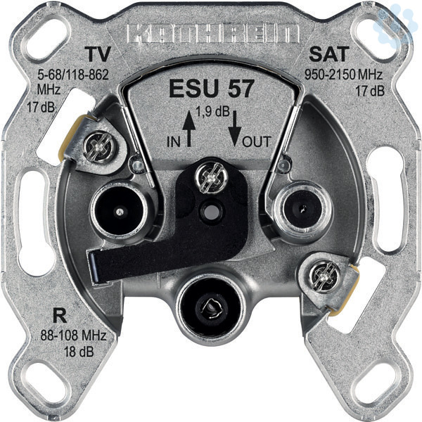 Durchschleifdose Einkabelsystem, 3fach, 5-68, 118-862 u. 950-2150 MHz, DC-Durchl. ueb. SAT, Anschlussdaempfung typ. TV SAT 17 dB