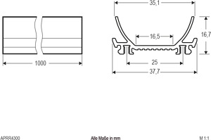 Das Einlegeprofil wird in Verbindung mit dem Trägerprofil APRU46 montiert. Das Einlegeprofil kann nach der Montage des APRU46 einfach von Vorne eingeklipst werden. Technische Daten: Material: Aluminium eloxiert, Schutzklasse: IP20.