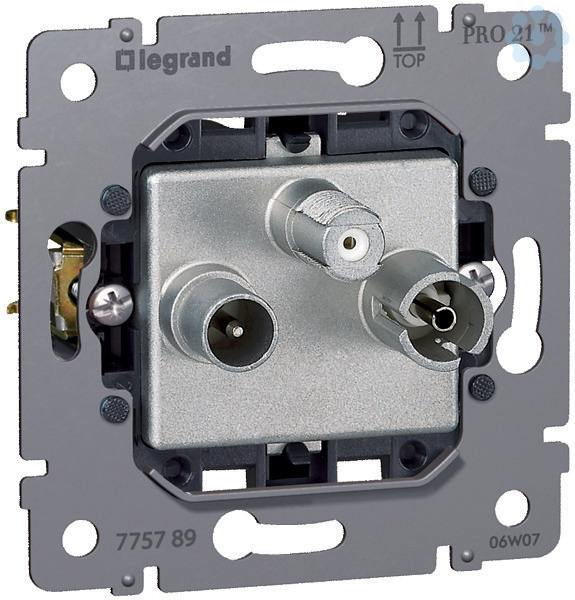 3-Loch-Dose (je ein Ausgang für TV-, Radio- und SAT-Receiver). Zur Verwendung mit Abdeckung Best.Nr. 77xx 73. Enddose für Einzelanlagen. Anschlussdämpfung: 1,5 dB.