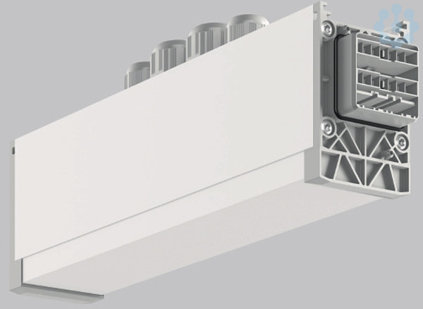 Mitteleinspeisung, 7-polig, Anschluss Buchse / Stecker. Gehäuse Aluminium-Strangpressprofil pulverbeschichtet. Abdeckung Kunststoff in Gehäusefarbe. LINEDO Steckersystem aus Kunststoff hellgrau. 4 Kabelverschraubungen (2 x M20 und 2 x M25). Kabelverschraubungen oben. Komfortabler Anschluss für starre und flexible Leitungen. Speziell für die Verwendung bei Lichtbandmodulen mit hohem opalen Diffusor.