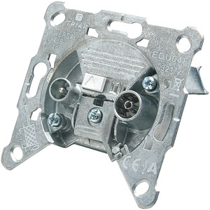2-Loch Universaldose mit durchgängigen Frequenzbändern für TV/RF und SatHauptmerkmale: flexibel und zukunftssicher, geeignet für BK- und SAT-ZF-Hausverteilanlagen, 2 gleichberechtigte Auslässe für diverse Endgeräte, rückkanaltauglich, Einzeldose für entkoppelte Stichleitungen vom Etagenabzweiger oder Multischter bzw. LNC, fernspeisetauglich über TV-Auslass.