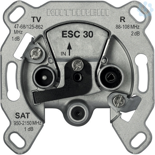 Einzelanschlussdose 3fach, 47-68 125-862 u. 87,5-108 u. 950-2150 MHz, DC-Durchlass ueber SAT, Anschlussdaempfung typ. Radio 2 dB, TV 1 dB, SAT 1 dB