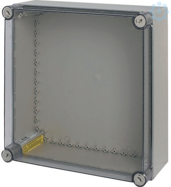 Einzel-Leergehäuse, UL approbiert, Material Polycarbonat, schlagfest, Schutzart IP65, optional abschließbar mit DVZ...-CI, patentierter Deckelverschluss mit integriertem Überdruckausgleich, Seitenwände glatt, ohne Vorprägungen, Befestigungslaschen für Wandbefestigung, plombierbare Deckelverschlüsse, RAL 7035, grau (Unterkasten), durchsichtig rauchgrau, (Deckel), Einbautiefe bei Montageplatte=150mm, Ausführung Deckel: durchsichtig rauchgrau, Ausführung Unterteil: glatt