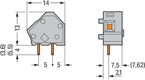 | Winkel Leiterplatte/Leiteranschluss | 45°/135° (schräg nach oben) |