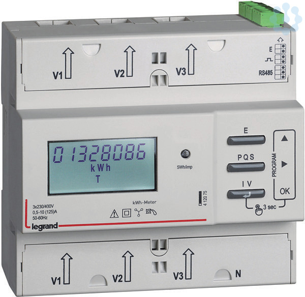 Legrand Energiezähler EMDX³, MID, 125 A, 3-phasig, Direktanschluss, 6-modulig , mit RS485 + Impulsausgang, zur Messung der verbrauchten Wirkenergie eines 3-phasigen Stromkreises.