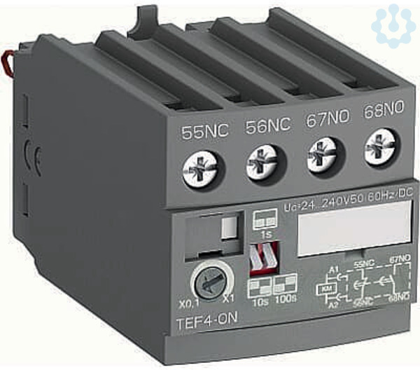 TEF4 elektronische Zeitrelais werden frontseitig auf AF Schütze oder NF Hilfsschütze montiert und verriegelt. Eine mechanische Anzeige gibt den Schützstatus an.