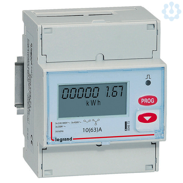 Legrand Energiezähler EMDX³, 63 A, 3-phasig, Direktanschluss, 4-modulig , mit Impulsausgang, zur Messung der verbrauchten Wirkenergie eines 3-phasigen Stromkreises.
