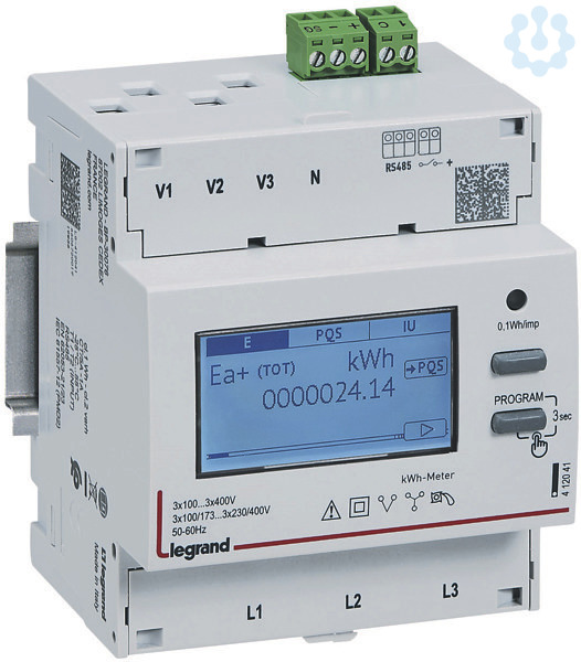 Legrand Energiezähler EMDX³, MID, 3-phasig, Anschluss über Stromwandler (CT), Wandlerbereich x/5, 4-modulig, mit RS485 Schnittstelle, zur Messung der verbrauchten Wirkenergie eines 3-phasigen Stromkreises.