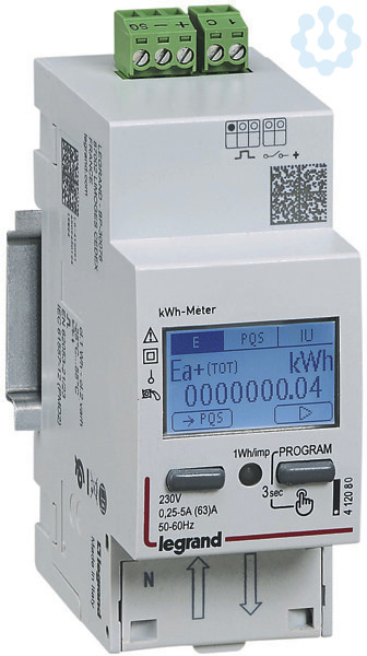 Legrand Energiezähler EMDX³, MID, 63 A, 1-phasig, Direktanschluss, 2-modulig , mit Impulsausgang, zur Messung der verbrauchten Wirkenergie eines 1-phasigen Stromkreises.