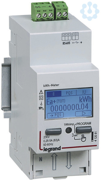 Legrand Energiezähler EMDX³, MID, 63 A, 1-phasig, Direktanschluss, 2-modulig , mit RS485 Schnittstelle, zur Messung der verbrauchten Wirkenergie eines 1-phasigen Stromkreises.