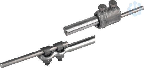Erdeinführungsstange-Set nach DIN EN 62561-(1+2), komplett mit Trennmuffe und Anschlussklemmen (KS-Schrauben). Ausführung St/tZn mit Trennmuffe ZG.