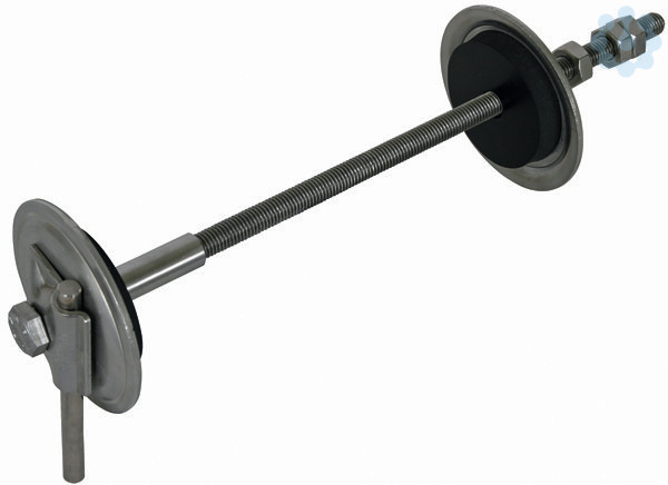 Erder- und Wanddurchführung mit MV-Klemme aus NIRO (V4A), zur druckwasserdichten Durchführung der Erd- / Potentialausgleichsleiter bei Mauern und Wänden mit Gewindestange M10 aus NIRO. Ausführung zum nachträglichen Einbau mit Bohrung (D14 mm) oder ggf. durch die Fertigspreize der Schalung. Mit Druckwasserprüfung bis 1 bar (bis Tiefe von 10 m gegenüber stehendem Wasser).