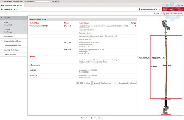 Einpolige Erdungs- und Kurzschließvorrichtung nach DIN VDE 0683-100 (EN/IEC 61230), Seilquerschnitt: 50 mm², Maximaler Kurzschlussstrom / -dauer: 14,0 kA / 0,5 s - 2,5; Länge A=5000 mm; phasenseitig bestückt mit 1x Universalklemme Ø20/25 mm, SQ mit Art.-Nr. 773 234 und erdseitig bestückt mit 1x Universalklemme Ø25/30 mm, mit Handgriff und Art.-Nr. 774 330.