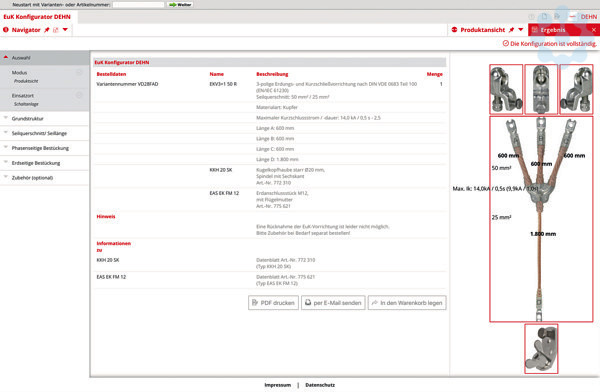 Dreipolige Erdungs- und Kurzschließvorrichtung nach DIN VDE 0683-100 (EN/IEC 61230), Seilquerschnitt: 150 mm² / 50 mm², Maximaler Kurzschlussstrom / -dauer: 42,0 kA / 0,5 s - 2,5; Länge A=B=C= 600 mm, Länge D = 1800 mm; phasenseitig bestückt mit 3x Kugelkopfhaube starr Ø25 mm, SK mit Art.-Nr. 772 320 und erdseitig bestückt mit 1x Erdanschlussstück M12, mit Flügelmutter und Art.-Nr. 775 621.