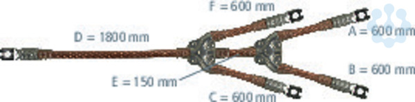 Vierpolige Erdungs- und Kurzschließseile, phasenseitig und erdseitig unbestückt, zur Komplettierung mit geeigneten Klemmen, nach DIN VDE 0683-100 (EN/IEC 61230). Seilquerschnitt: 50 mm2, Max. Kurzschlussstrom: 14,0 kA / 0,5 s, Seillänge A,B,C,F = 600 mm, E = 150mm und D = 1800 mm, Varianten.-Nr. V3NCSHX. Erdungs- und Kurzschließvorrichtungen können über den EuK-Konfigurator online unter www.dehn.de/de/euk zusammengestellt werden.