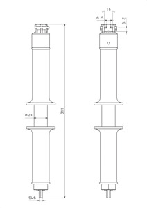 Erdungsgriff VI. Mit Doppelfunktion: Zum Einsetzen der Erdungspatronen mit T-Anschluss in NHSicherungsunterteile und zum Anschließen der EuK-Vorrichtungen VI an Erdungspatronen.