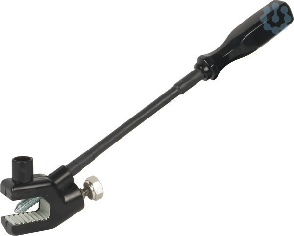 Erdungsklemme mit flexiblem Drehgriff und zwei Stellmöglichkeiten. Zum erdseitigen Anschluss an EuK-Vorrichtungen für Kabelverteilerschränke (KVS) mit Anschlussbolzen M8, Verdrehungsschutz und Mutter.