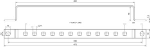 Erdungsschiene zum Anschrauben an Stahlkonstruktionen. Für den Anschluss von Flachleitern mit Bohrung oder Rundleiter mit z.B. KS-Verbinder. Ausführung mit 1x 12 Anschlüssen - Bohrungen D11 x 11 mm.