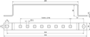 Erdungsschiene zum Anschrauben an Stahlkonstruktionen. Für den Anschluss von Flachleitern mit Bohrung oder Rundleiter mit z.B. KS-Verbinder. Ausführung mit 1x 8 Anschlüssen - Bohrungen D11 x 11 mm.
