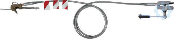Einpolige Erdungs- und Kurzschließvorrichtung nach DIN VDE 0683-100 (EN/IEC 61230) für Oberleitungen elektrischer Bahnen,; 8,5 m lang, mit Fahrdraht-Erdungsklemme und Schienenanschlussklemme (Ratsche) bestückt.