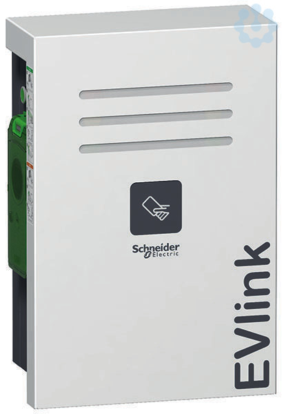 EVLink Parkplatz 2 Wand, Wand-Ladestation - 2 Ladepunkte. EVLink Parkplatz 2 Wand RFID. max. Ladeleistung 2 x 22 kW, Typ 2 x 2, TE 3P+N. Für halböffentliche Garagen und Parkplätze. Für den Innen- oder Außenbereich (IP54). Zugriffskontrolle mit RFID (abschaltbar). OCPP Kommunikation mit einem Backend. Ethernet + optional GPRS. Stromzähler + Modbus für externen MID Energiezähler.