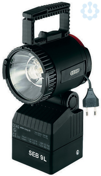 Ex-Handscheinwerfer SEB 9 L für 4,8 V/ 9,5 Ah ladbare NiMH Batterie, mit Halogen-Hüllkolbenlampe, Nebenlicht-Glühlampe, Streulinse und Batterie (ladbar direkt über internes Ladegerät, mit LG 443 oder Kfz-Halter 90) , Lampe/ Leuchtmittel: 5,5 V / 5,5 W Halogen-Hüllkolbenlampe, Nebenlichtlampe: 4,8 V/0,3 A, Lampennennlichtstrom: ca. 100 lm, Batterie: 4,8 V/ 9,5 Ah ladbare NiMH Batterie, Nennbetriebsdauer: 7 h, Ladezeit: max. 20 h (abhängig vom Ladezustand), Lampensockel: BA 15d, Gehäusematerial: Polyamid, Bemessungsspannung: 230 V AC / 10 - 33 V DC, Frequenz: 50 - 60 Hz, Kennzeichnung nach 94/9/EG: Ex II 2 G Ex e ib IIC T4/ , Ex II 2 D Ex tD A21 IP66 T85 °C, EG-Baumusterprüfbescheinigung: BVS 09 ATEX E 005, Zulässige Umgebungstemperatur: -20 °C bis +40 °C, Abmessungen (L x B x H): 325 x 119 x 146.5 mm, Gewicht: 2.2 kg, Schutzklasse: II, Schutzart nach EN 60529: IP65