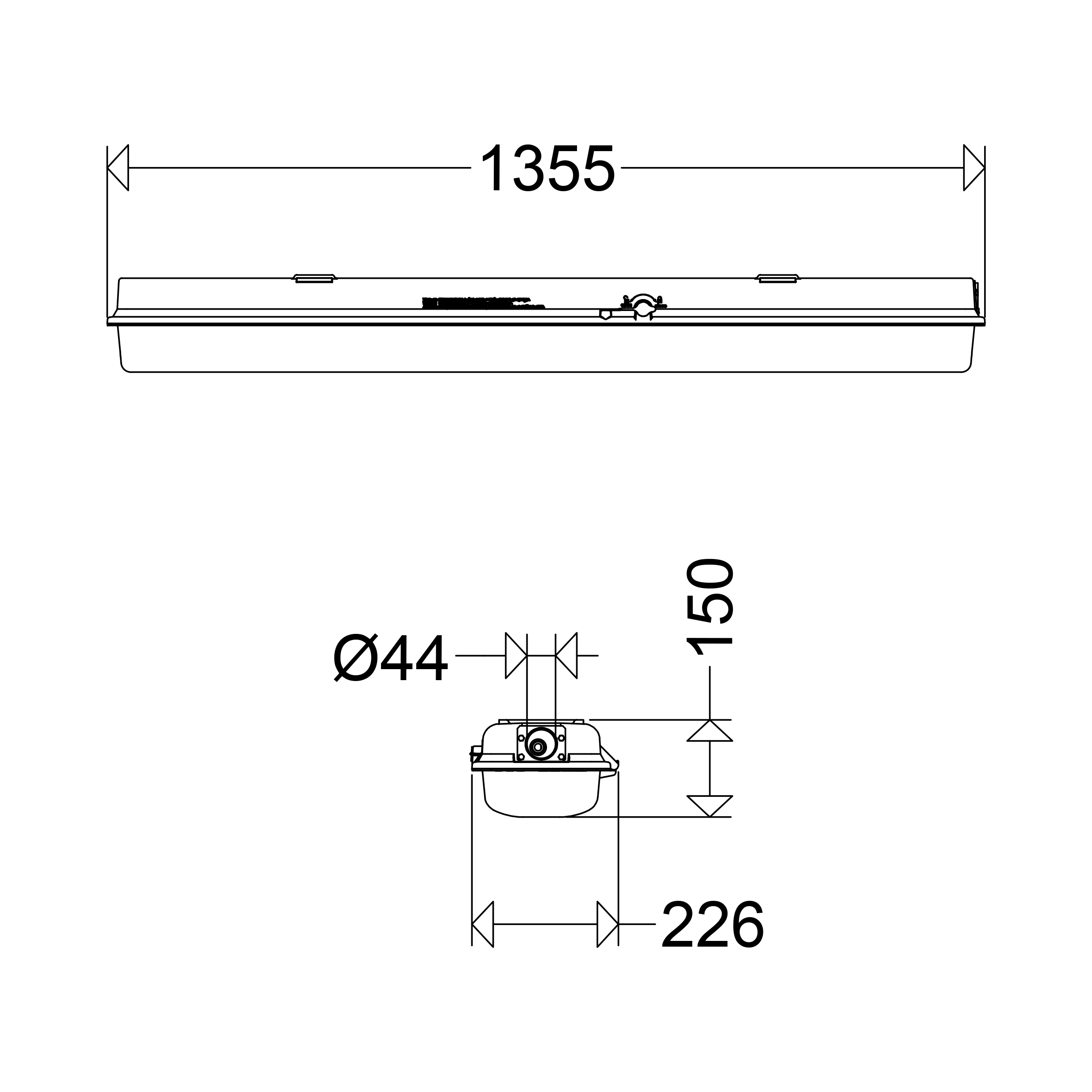 EX-LED-Mastansatzleuchte, EX-Zone 1/21/2/22, 40 W, 5850 lm, SKI, IP66, breitstrahlend, 6500 K, Ra≥ 80, Ta -25 °C/+55 °C, L80B50>100000 h (@ Ta 25°C), L90B50>75000 h (@ Ta 25°C), L80B50>100000 h (@ Ta max), Wanne PC klar mit Innenprismen, Verschluss Kunststoff, Gehäuse glasfaserverstärktes Polyester, Farbe grau, EAN/GTIN:4041254286037.Explosionsgeschützte LED-Mastansatzleuchte mit Zentralverschluss für Zone 1/21. Glasfaserverstärktes Polyestergehäuse, klare Abschlusswanne aus Polycarbonat mit Innenprismen und Silikondichtung. Aluminiumreflektor lackiert mit vergossenen LED-Modulen und satinierten Entblendungselementen, abklapp-und herausnnehmbar. Gekapseltes EVG mit Überspannungs-, Überlast- und Kurzschlussschutz.