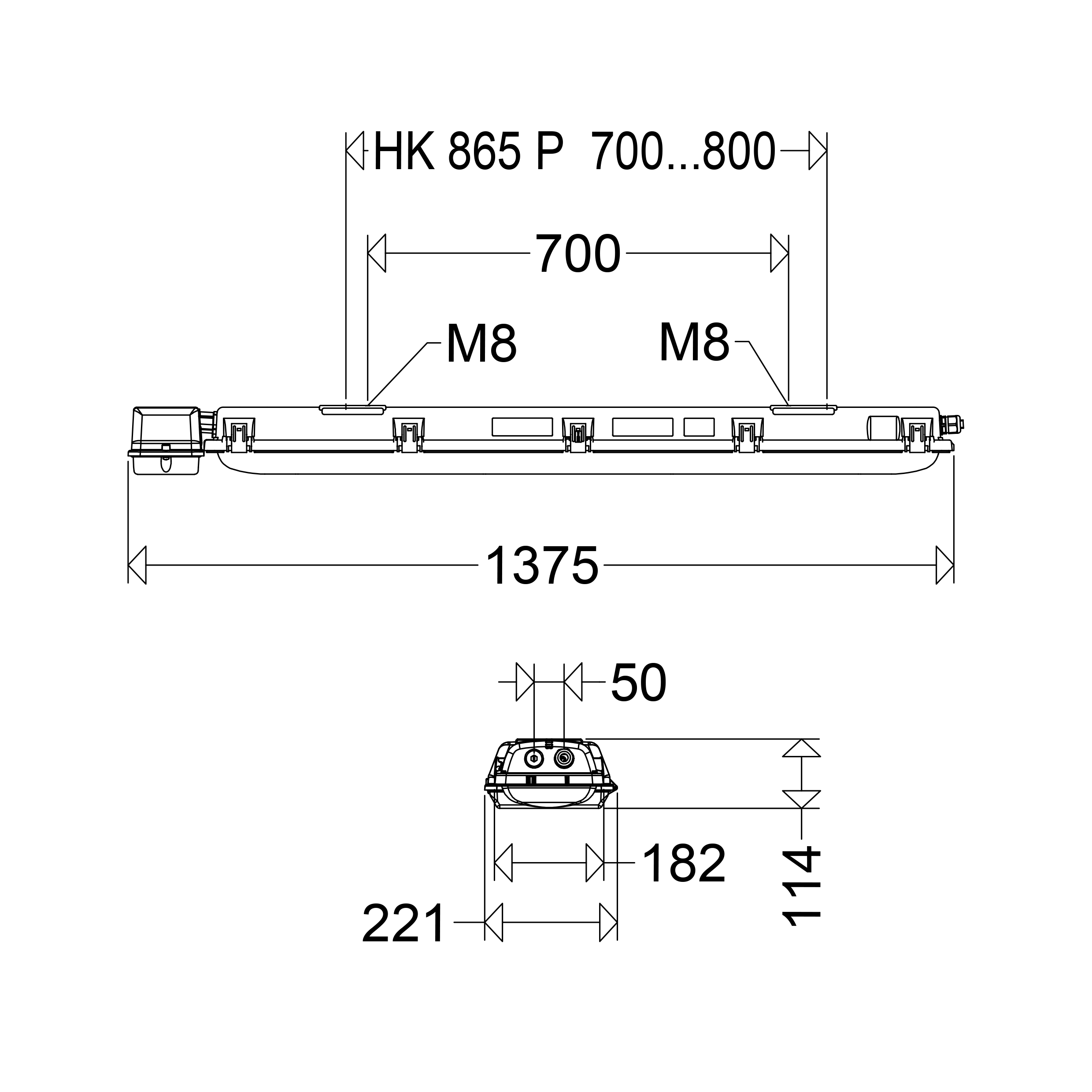 EX-LED-Notleuchte, ExeLed 1 N, EX-Zone 1/21/2/22, 41 W, 6320 lm, Einzelbatterie, Selbsttest, Brenndauer 1 h, SKI, IP66, breitstrahlend, 6500 K, Ra≥ 80, Ta -30 °C/+55 °C, L80B50>100000 h (@ Ta max), L80B50>100000 h (@ Ta 25°C), L90B50>85000 h (@ Ta 25°C), Wanne PC klar, Verschluss Edelstahl (1.4571), Gehäuse glasfaserverstärktes Polyester, Farbe grau, Rein-Raus-Verdrahtung (RR), EAN/GTIN:4041254300665.Explosionsgeschützte LED-Notleuchte ExeLED 1 N für Zone 1/21. Glasfaserverstärktes Polyestergehäuse mit angebautem Batteriekasten an einer Stirnseite der Leuchte, klare Abschlusswanne aus Polycarbonat, mit Silikondichtung und Verschlussklammern aus Edelstahl, davon zwei Sicherheitsverschlüsse. Stahlreflektor lackiert, mit vergossenen LED-Modulen in Abschlusswanne eingerastet (Sandwichbauweise), komplett abhängbar. Gekapseltes EVG mit integrierter Notlichtelektronik und automatischer Funktionsüberwachung gemäß EN 62034 mit optischer Anzeige der Prüfergebnisse. Im Batteriekasten eingebaute NiCd-Batterie mit elektronischem Ladesystem. Tiefentladeschutz nach EN 61347-2-7, kurzschlussfestem Akku-Anschluss und Verpolungsschutz, Wieder-Aufladezeit 24h nach EN 60598-2-22. Außenliegendes Befestigungssystem mit Halteklammern zur variablen Befestigung (Zubehör). Details siehe „Technische Daten“.
