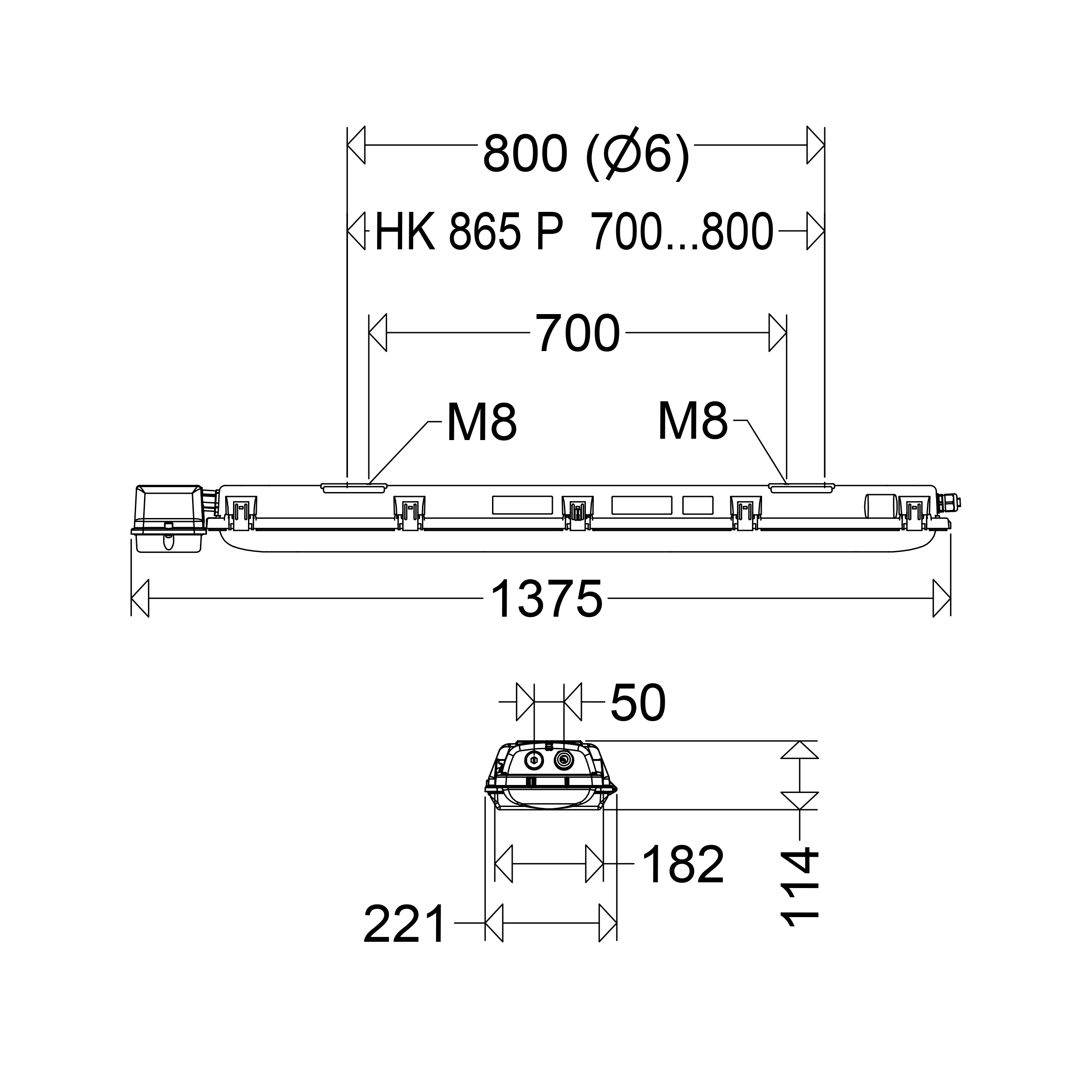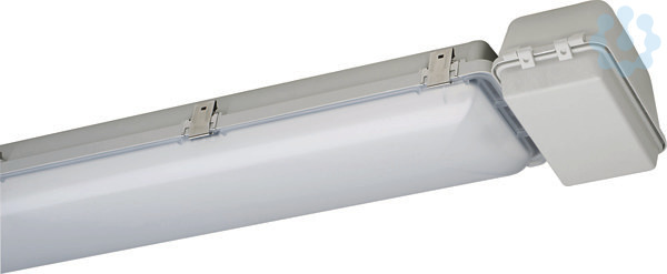 EX-LED-Notleuchte, ExeLed 2 N, EX-Zone 2/22, 41 W, 6320 lm, Einzelbatterie, Selbsttest, Brenndauer 3 h, SKI, IP66, breitstrahlend, 5000 K, Ra≥ 80, Ta -30 °C/+55 °C, L80B50>100000 h (@ Ta max), L80B50>100000 h (@ Ta 25°C), L90B50>75000 h (@ Ta 25°C), Wanne PC klar, Verschluss Edelstahl (1.4571), Gehäuse glasfaserverstärktes Polyester, Farbe grau, Rein-Raus-Verdrahtung (RR), EAN/GTIN:4041254296081.Explosionsgeschützte LED-Notleuchte ExeLED 2 N für Zone 2/22 und hohe Umgebungstemperaturen. Glasfaserverstärktes Polyestergehäuse, klare Abschlusswanne aus Polycarbonat mit Silikondichtung und Verschlussklammern aus Edelstahl, davon zwei Sicherheitsverschlüsse. Stahlreflektor lackiert mit LED-Modulen und EVG in Abschlusswanne eingerastet (Sandwichbauweise), komplett abhängbar. EVG mit integrierter Notlichtelektronik und automatischer Funktionsüberwachung gemäß EN 62034 mit optischer Anzeige der Prüfergebnisse. An der Stirnseite der Leuchte angebauter Batteriekasten mit NiCd-Batterie, elektronischem Ladesystem, Tiefentladeschutz nach EN 61347-2-7, kurzschlussfestem Akku-Anschluss und Verpolungsschutz, Wieder-Aufladezeit 24h nach EN 60598-2-22. Außenliegendes Befestigungssystem mit Halteklammern zur variablen Befestigung (Zubehör). Details siehe „Technische Daten“.