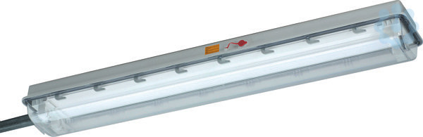 Ex-geschützte Mastansatzleuchte mit Polyestergehäuse für 2 x 36W-Leuchtstofflampe, geeignet für Zone 1/2 (II 2 G Ex db eb q IIC T4 Gb) bzw. 21/22 (II 2 D Ex tb IIIC T80°C Db), mit EVG mit end-of-life-Abschaltung" und Trennschalter zur allpoligen Abschaltung beim Öffnen der Leuchte, Gehäuse aus glasfaserverstärktem Polyester, abklapp- und aushängbare Leuchtenwanne aus klarem Polycarbonat mit Innenprismen, Zentralverschluss mit 6-kant-Steckschlüssel 13mm zu betätigen, Anschlussklemme (Standard L1 + N + PE), Klemmbereich max. 6mm², 1 Kabeleinführung M20 x 1,5, zulässige Umgebungstemperatur -20°C bis +55°C, Anschlussspannung 220-240V AC/DC, 0 bzw. 50-60Hz, Tragestutzen mit 42mm Durchmesser und 245mm Länge, IP66, SK I"