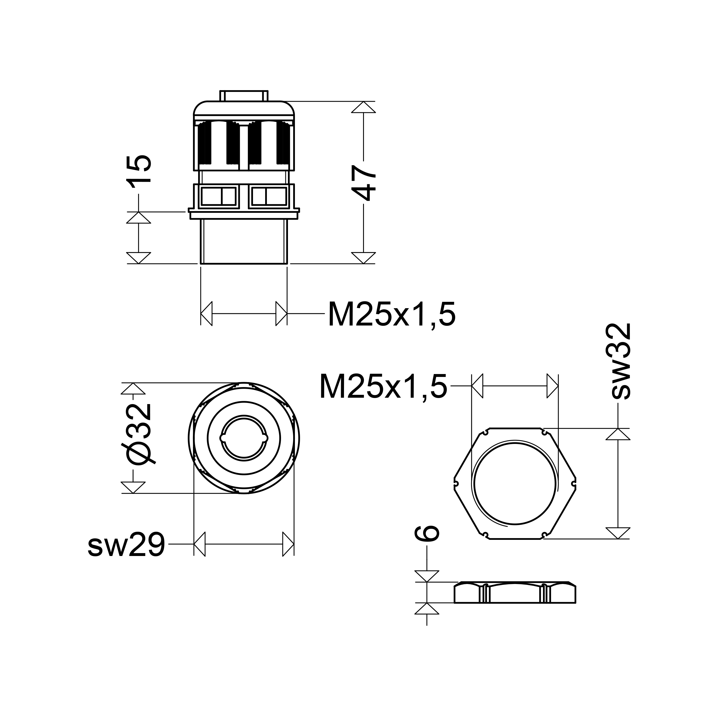 Zubehör: Kabeleinführung Verschraubung M25 m. Verschlussstopfen und Gegenmutter für Ex-Zone 1/21 Gehäuse Kunststoff (PA) EAN/GTIN:4041254256511