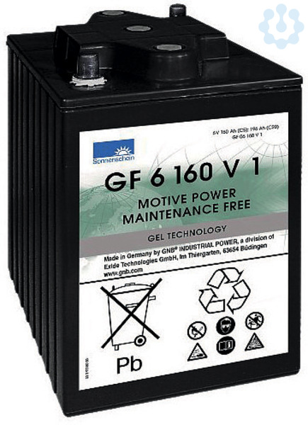 Die Exide Sonnenschein GF-V-Serie sind wartungsfreie dryfit Traktion Blockbatterien, die besonders für den harten, industriellen Einsatz geeignet sind. Typische Anwendungsbereiche sind zum Beispiel Reinigungsmaschinen, Kehrmaschinen, mobile Hebebühnen und fahrerlose Transportsysteme. Die hohe Qualität erkennt man unter anderem in der sehr hohen Energiesicherheit und der sehr geringen Selbstentladung. Die Bleiakkus mit Gel-Technologie sind äußerst robust und zuverlässig.