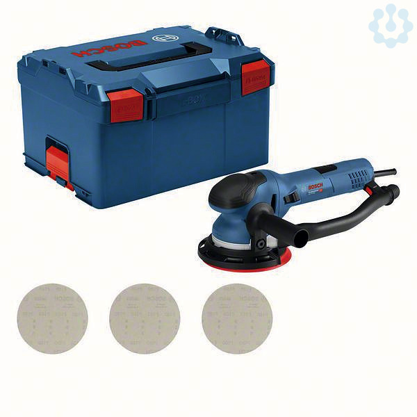 Exzenterschleifer GET 75-150, L-BOXX 238 (1 600 A01 2G2); Schleifteller (150 mm) (2 608 601 335); 1 x Schleifblatt M480, Best for Wood and Paint, 80 (separat erhältlich als 5er-Pack: 2 608 621 162); 1 x Schleifblatt M480, Best for Wood and Paint, 120 (separat erhältlich als 5er-Pack: 2 608 621 164); 1 x Schleifblatt M480, Best for Wood and Paint, 180 (separat erhältlich als 5er-Pack: 2 608 621 166); Schutzring für 150 mm (2 607 017 497); Zusatzhandgriff inkl. Schraube (2 607 017 500); Ausblasrohr für 150 mm (2 607 017 499); Innensechskantschlüssel