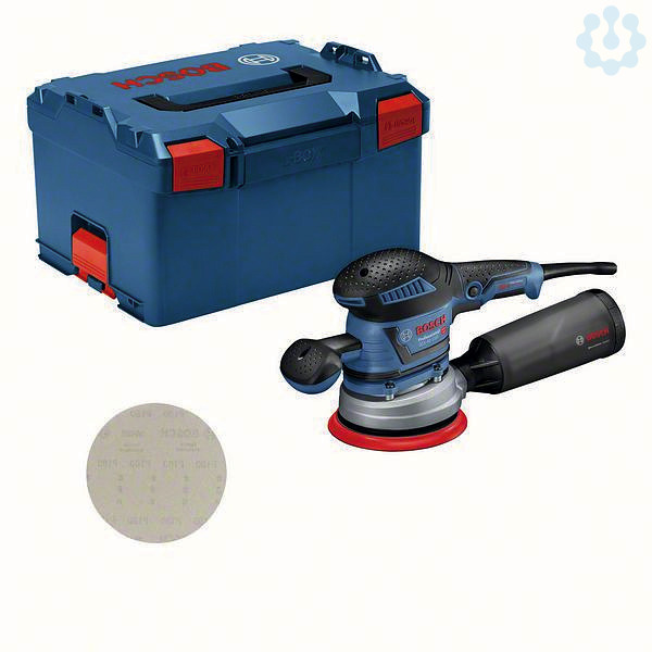 Exzenterschleifer GEX 40-150, L-BOXX 238 (1 600 A01 2G2); Schleifteller (150 mm) (2 608 601 335); 1 x Schleifblatt M480, Best for Wood and Paint, 120 (separat erhältlich als 5er-Pack: 2 608 621 164); Microfilter Box (2 605 411 233); Zusatzhandgriff (2 602 026 177); Innensechskantschlüssel
