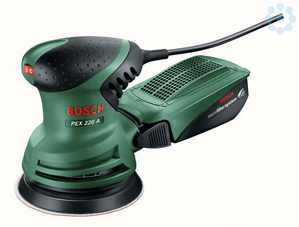 Exzenterschleifer PEX 220 A. Erzielt mühelos hochwertige Oberflächen, Leistungsstarker 220-W-Motor sorgt für feinen Schliff bei kleineren Oberflächen, Leichtes, kompaktes Design und ein Einhandgriff ermöglichen bequemes Arbeiten. Microfilter-Staubbox reduziert Staub für mehr Sauberkeit im Arbeitsbereich, Ideal zum Schleifen ebener oder geschweifter Oberflächen. Für Arbeiten an Holz, Gips und gestrichenen, lasierten oder polierten Oberflächen, Bosch Microfilter (2 605 411 198), Gummischleifteller (2 608 601 175), 1 Schleifblatt (Red Wood), Kartonschachtel