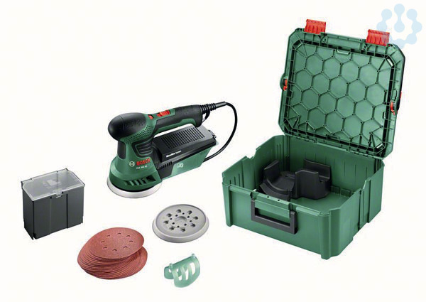 Exzenterschleifer PEX 300 AE + SystemBox. Erzielt mühelos Oberflächen von höchster Qualität, Leistungsstarker 270-W-Motor ermöglicht feinen Schliff bei mittelgroßen Oberflächen. Elektronische Drehzahlvorwahl sorgt für die perfekte Drehzahl passend zu Anwendung und Material, Hervorragende Handlichkeit für horizontales und vertikales Arbeiten sowie Arbeiten über Kopf. Ideal zum Schleifen und Polieren flacher oder gewölbter Oberflächen. Für Arbeiten an Holz, Gips und gestrichenen, lasierten oder polierten Oberflächen, Einzelne SystemBox, Größe M (1 600 A01 SR4), Kleine Zubehörbox, Größe M (1 600 A01 V7P), Flexible Schleifplatte, Ø 125 mm, mittlere Härte (2 609 256 B61), Flexible Schleifplatte, Ø 125 mm, weich (2 609 256 B62), 25-teiliges Schleifblatt-Set (2 607 019 497), Paper Assistant (ET-Nr. 2 609 004 646), Karton
