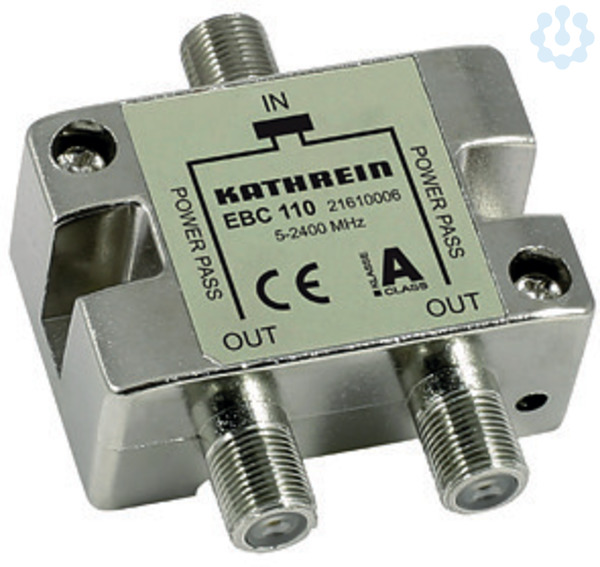 2fach-F-Verteiler 5-2400 MHz, Schirmklasse A, Anschluss fuer Potenzialausgleich, Fernsp. max. 24 V 0,5 A 2 Ausg., ohne Entkopplungsdioden