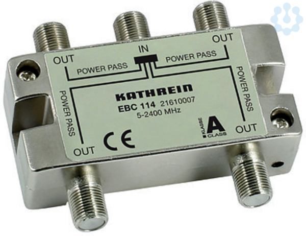 4fach-F-Verteiler 5-2400 MHz, Schirmklasse A, Anschluss fuer Potenzialausgleich, Fernsp. max. 24 V 0,5 A 2 Ausg., ohne Entkopplungsdioden