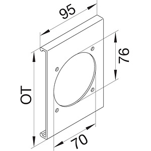 Blende CEE-Steckdose 70er Befestigungsspur aus PVC zu FB Oberteil 230mm reinweiß.Blende aus Kanaloberteil für CEE Geräteeinbaudose, Lochmaßgröße 70 x 76 mm.