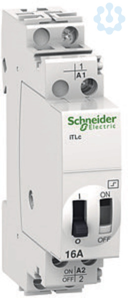 Fernschalter Acti 9 iTLc. 1-polig, 1 Schließer, Nennstrom 16A, Steuerspannung (Uc) 48V AC. Mit Zentral-Ein und Ausschaltung.