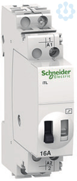 Fernschalter Acti 9 iTL. 1-polig, 1 Schließer, Nennstrom 16A, Steuerspannung (Uc) 12V AC / 6V DC. Fernschalter zum Schalten von Beleuchtungsstromkreisen mit einem oder mehreren Tastern. Breite in TE 1.
