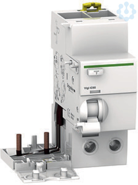FI-Block Acti 9 Vigi iC60L. 2-polig, Nennstrom 63A, Nennfehlerstrom 30mA, Typ A, SI, Betriebsspannung (Ue) 400-415V AC, Isolationsspannung (Ui) 500V AC. Kann rechtsseitig an Leitungsschutzschalter der Serie iC60L montiert werden. Die Auslösung durch Fehlerstrom wird von einer roten, mechanischen Anzeige am Knebel angezeigt. Klemmen IP 20. Prüftaste für die regelmäßige Prüfung der Funktion. Technologie der Auslöseeinheit- thermomagnetisch. Zusätzlich anreihbare Hilfsmodule (optional)- Fehlermeldeschalter, Hilfsschalter, Unterspannungsauslöser, Überspannungsauslöser, Arbeitsstromauslöser. Der Vigi iC60L FI-Block erfüllt folgende Normen- IEC/EN 61009-1. Des Weiteren ist diese Baureihe VDE zertifiziert!.