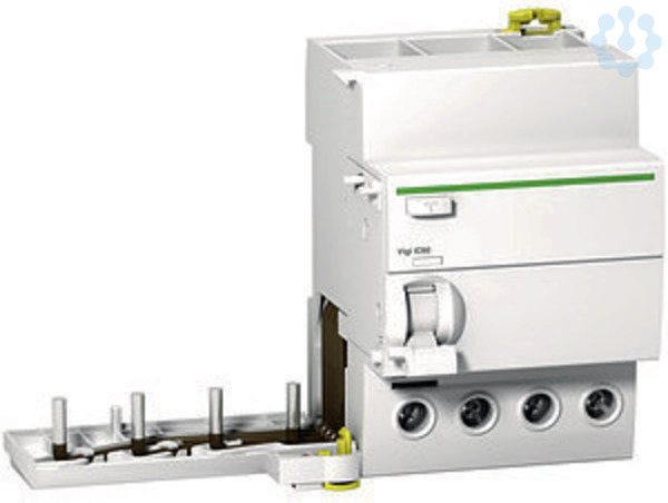 FI-Block Acti 9 Vigi iC60N/H. 4-polig, Nennstrom 63A, Nennfehlerstrom 30mA, Typ A, Betriebsspannung (Ue) 400-415V AC, Isolationsspannung (Ui) 500V AC. Kann rechtsseitig an Leitungsschutzschalter der Serie iC60N/H montiert werden. Die Auslösung durch Fehlerstrom wird von einer roten, mechanischen Anzeige am Knebel angezeigt. Klemmen IP 20. Prüftaste für die regelmäßige Prüfung der Funktion. Technologie der Auslöseeinheit- thermomagnetisch. Zusätzlich anreihbare Hilfsmodule (optional)- Fehlermeldeschalter, Hilfsschalter, Unterspannungsauslöser, Überspannungsauslöser, Arbeitsstromauslöser. Der Vigi iC60N/H FI-Block erfüllt folgende Normen- IEC/EN 61009-1. Des Weiteren ist diese Baureihe VDE zertifiziert!.