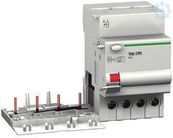Fehlerstromschutzschalter Vigi C60 Multi 9 OEM, 300mA. 4-polig, Nennstrom 63A, Typ AC, Betriebsspannung (Ue) 400-415V, Isolationsspannung (Ui) 500V AC. Vigi C60 Fehlerstromschutzblöcke für C60 bieten Schutz gegen Stromschlag durch direkte und indirekte Berührung und Brandschutz bei Isolationsfehlern. Technologie der Auslöseeinheit- Differenzstrom. An Leitungsschutzschalter, die mit einem Vigi-Modul kombiniert werden, kann weiterhin zusätzliches Zubehör angebaut werden. Zusätzlich anreihbare Hilfsmodule (optional)- Anzeige von Schaltstellung (OF), Fehlerauslösung (SD), Arbeitsstromauslöser (MX, MX+OF), Unterspannungsauslöser (MN, MNs, MNx). Werkzeuglose Montage linksseitig am Gerät. Der Vigi C60 Fehlerstromschutzschalter erfüllt folgende Normen- IEC/EN 61009-1.
