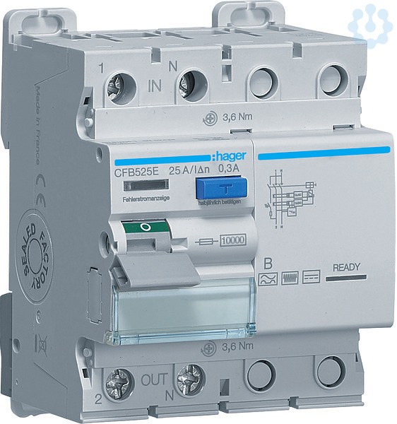 Fehlerstromschutzschalter 2 polig 10kA 25A 300mA Typ B.Allstromsensitiver Fehlerstrom-Schutzschalter (FI, RCCB) nach DIN EN 61008-1 (VDE 0664-10), DIN EN 61008-2-1 (VDE 0664-11), DIN EN 61543 (VDE 0664-30) und DIN EN 62423 (VDE 0664-40). Kurzzeitverzögerter FI zum Schutz vor glatten Gleichfehler- und Wechselfehlerströmen im Frequenzbereich bis 2 kHz. Zur Einhaltung der Anforderungen aus den Installationsnormen DIN VDE 0100-410 und DIN VDE 0100-530. Geeignet zum nachträglichen Anbau von Zusatzeinrichtungen. Anschlussklemmen mit Bi-Connect-Klemmen unten, externe blaue Test-Taste, Typ B. Betriebsanzeige, Hutschienenschieber oben und unten für leichte Installation. Beschriftungsmöglichkeit direkt am Gerät.